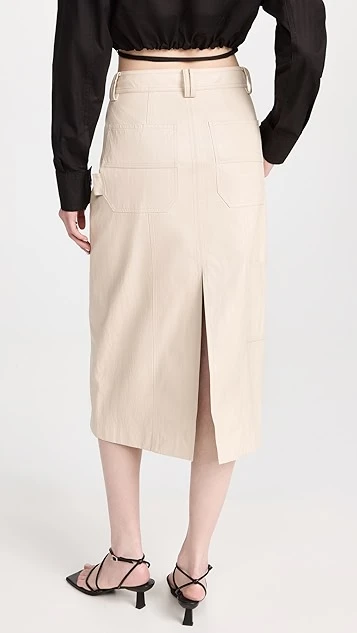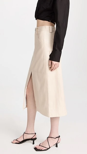 Crafted from luxe vegan leather, this premium A.L.C. midi skirt features both a front and back slit, as well as a high rise waist that feels equally timeless and modern.