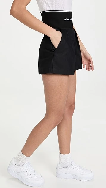A fresh take on sporty shorts from Alexander Wang. This cool pair stands out with a sharply gathered waist that’s embellished with prominent logo lettering. Tuck in your favorite tank top or blouse and your look will be complete.