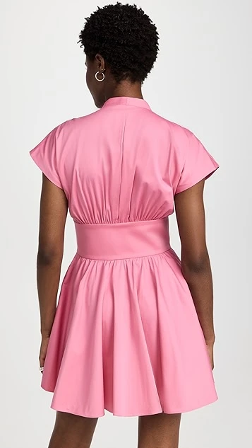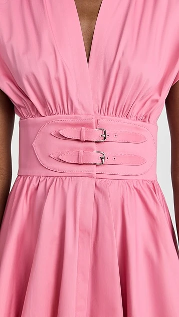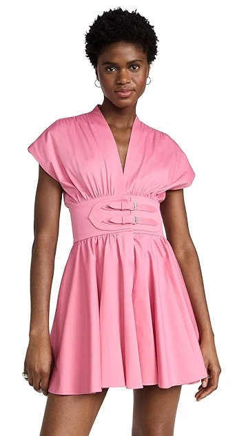 Lustrous pink poplin composes this Alexis mini dress, which gains a striking look from a broad belt with a pair of buckles at the waist. Keep the focus on this silhouette by pairing it with understated heels.