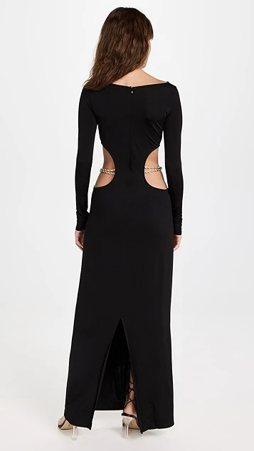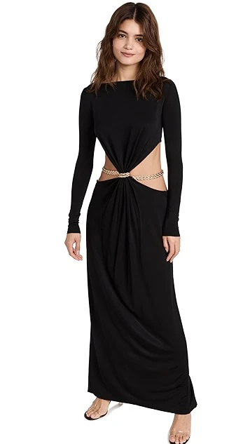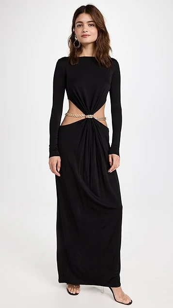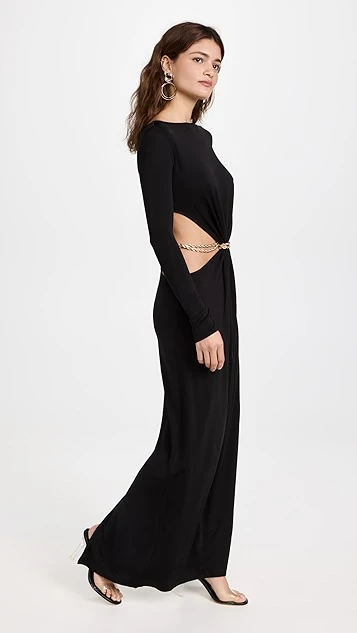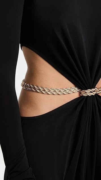- Gold-tone chainb belt at waist
