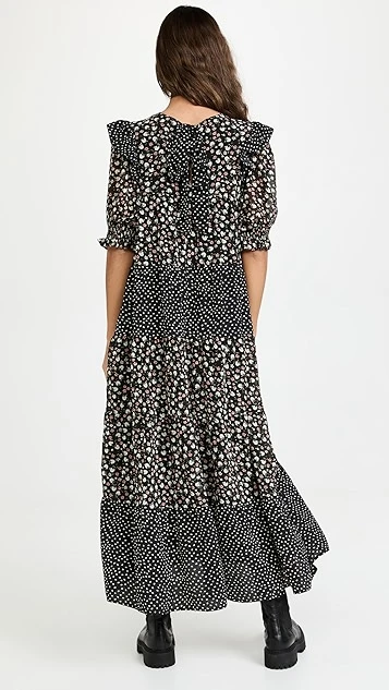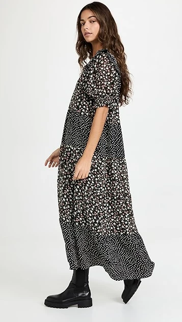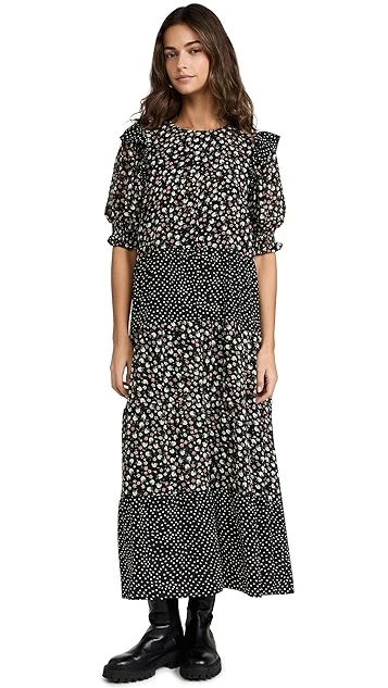 Featuring a patchwork of floral and polka-dot prints and a sweeping, tiered silhouette, this ENGLISH FACTORY dress is a maxi as easy as it is pretty. Style it with boots to bring a bit of edge to the swingy silhouette.