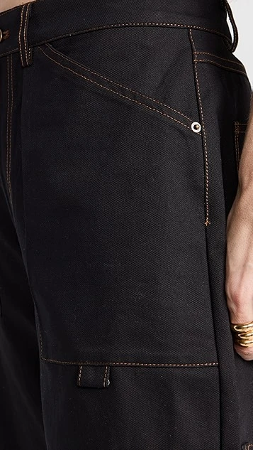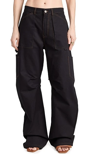 Crisp, darkly colored twill composes these wide-leg Lioness pants, which feature an array of cargo pockets that add to their ’90s-inspired look. Go with a fitted tank and a denim jacket to round out your outfit.