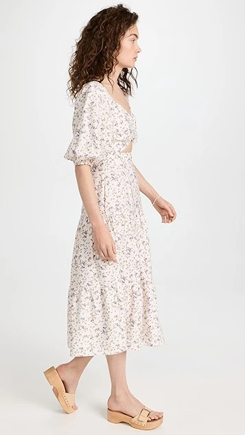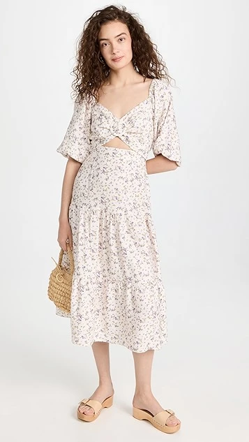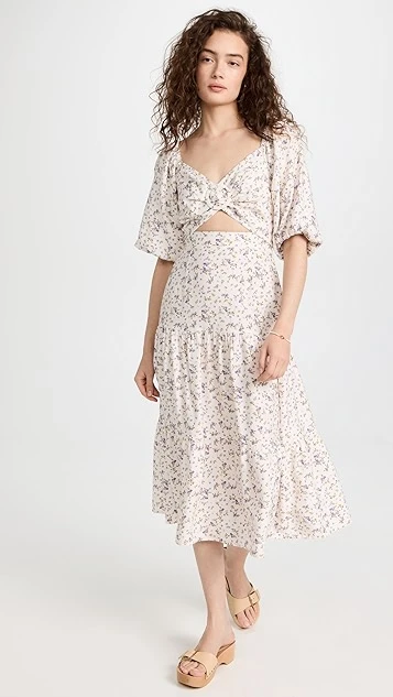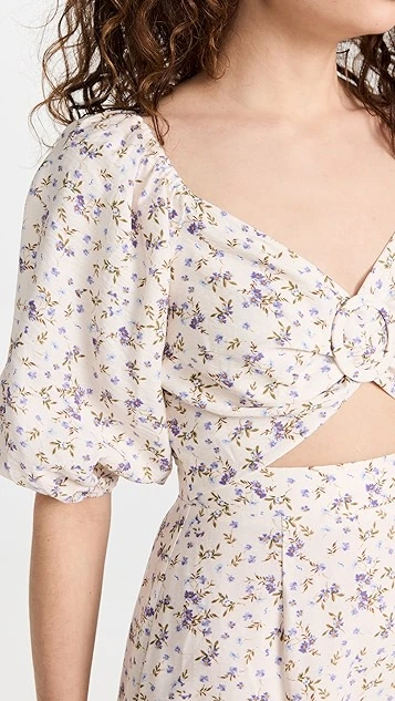 Sweet and spring-friendly, this MINKPINK midi dress is crafted from lightweight fabric and accented with a classic ditsy print. A subtle tonal ring adds emphasis to the bodice and front cutout.