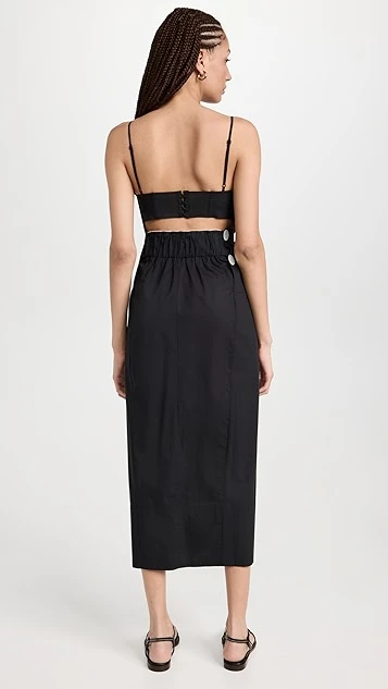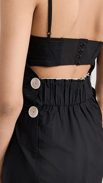 - Pleated waist with button accents at back