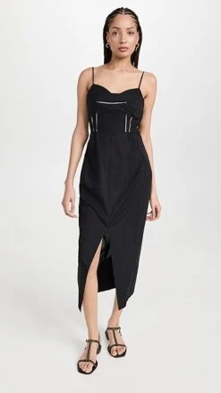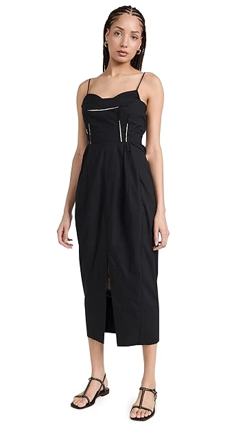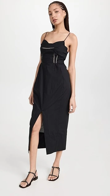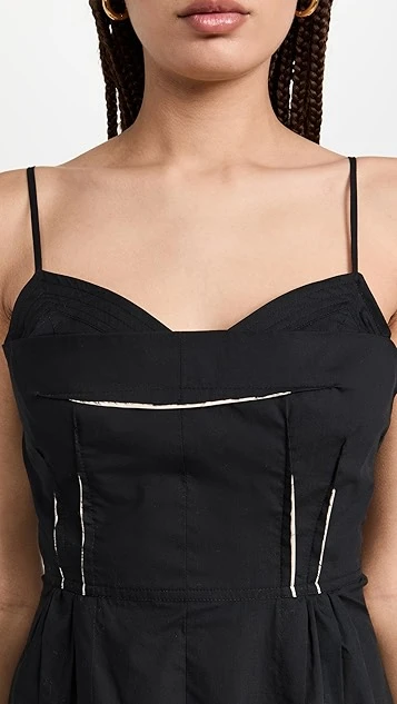 - Raw bodice seams with contrast trim