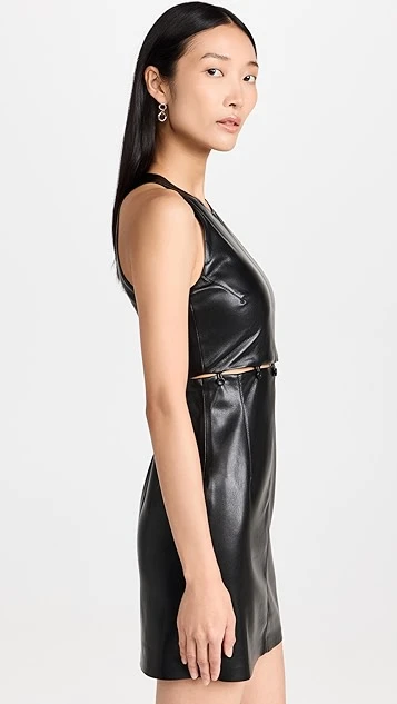 - Cutout waist with button-off skirt
