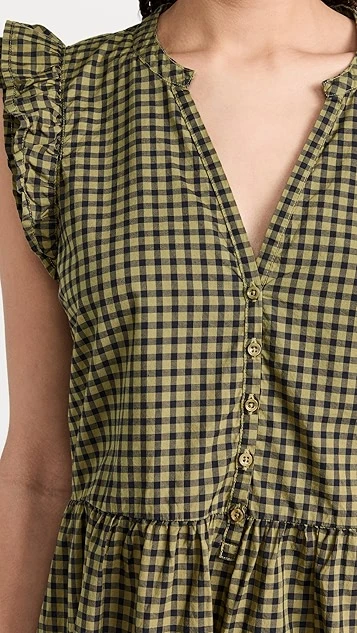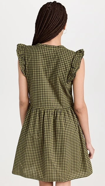 Polished yet everyday friendly, this Nation LTD mini dress features a dark gingham pattern and easy shift proportions. Subtle ruffles add a touch of extra emphasis to the shoulders.