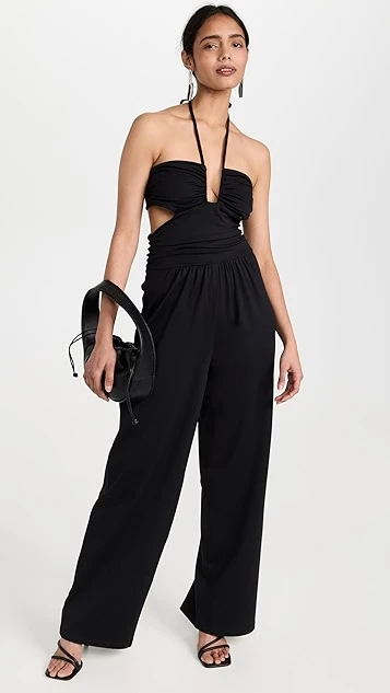 Taking inspiration from one of the label’s signature special-occasion dresses, this Susana Monaco jumpsuit features a formfitting upper portion with a halter neckline that gives way to a wide-leg pant. Go with tonal heels and accessories to keep your look chic and minimalist.